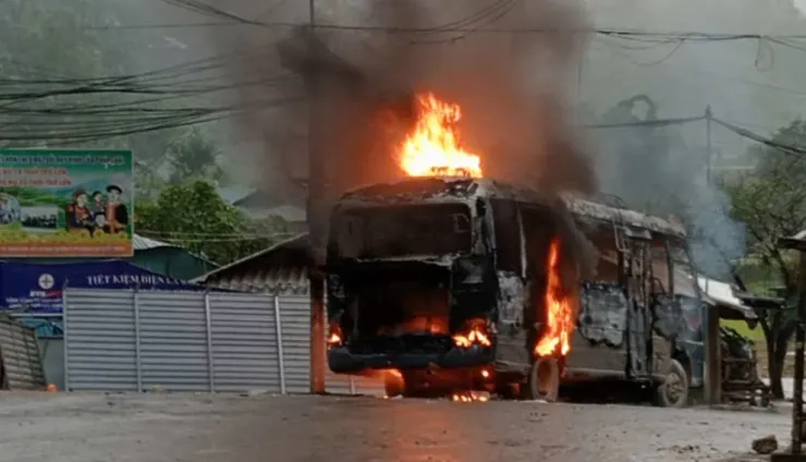 Nhân chứng tại hiện trường cho biết, vào khoảng 4 giờ 30 phút sáng 17/9, sau khi nghe thấy một tiếng nổ lớn, người dân xung quanh khu vực chợ phiên Tả Sìn Thàng chạy ra thì thấy chiếc xe khách đang bốc cháy dữ dội tại một bãi đất trống.