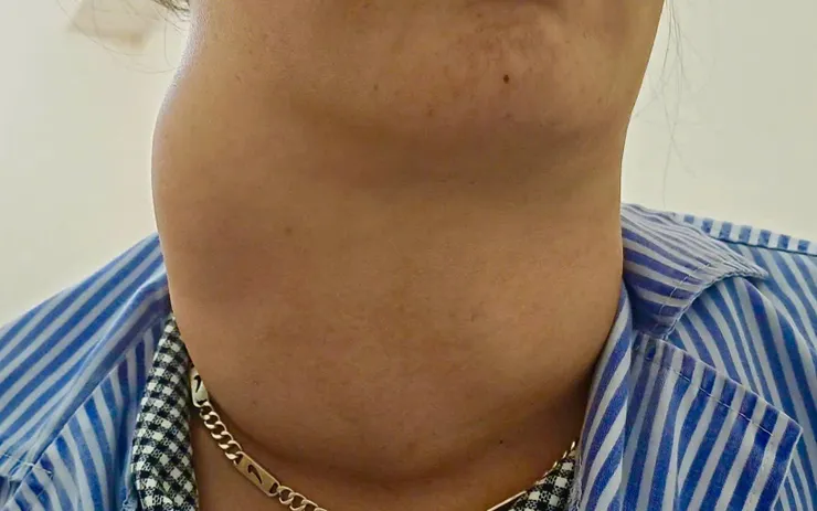 Bệnh nhân B.T.N. (41 tuổi, trú tại Phú Thọ) nhập Bệnh viện Nội tiết Trung ương trong tình trạng cổ sưng to, biến dạng rõ, bướu giáp phát triển khổng lồ gây khó thở và nuốt vướng kéo dài.